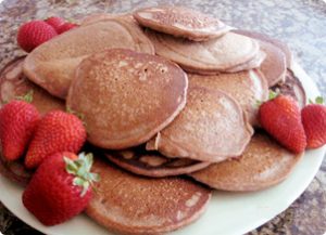 This recipe gives a delicious, very nutritious pancake, though it will taste different than something made with wheat. However, their texture is wonderful, and they are sweet and leave one satisfied, not ‘hung-over’ from a carbohydrate blast. I love to serve these to my little ones, with fresh raspberries, butter, and maybe a drizzle of honey, maple syrup or blackstrap molasses, though the sweetness of the pancakes might be enough for your needs. They’re also wonderful with a dollop of plain European-style yogurt with strawberries, blueberries, or sliced bananas, and sprinkled with chopped raw walnuts. Bon appetit!