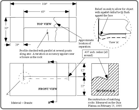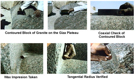 Many of the artifacts that modern civilization creates would be impossible to produce using simple handwork. We are surrounded by artifacts that are the result of men and women employing their minds to create tools which overcome physical limitations. We have developed machine tools to create the dies that produce the aesthetic contours on the cars that we drive, the radios we listen to and the appliances we use. To create the dies to produce these items, a cutting tool has to accurately follow a predetermined contoured path in three dimensions. In some applications it will move in three dimensions, simultaneously using three or more axes of movement. The artifact that I was looking at required a minimum of three axes of motion to machine it. When the machine tool industry was relatively young, techniques were employed where the final shape was finished by hand, using templates as a guide. Today, with the use of precision computer numerical control machines, there is little call for handwork. A little polishing to remove unwanted tool marks may be the only handwork required. To know that an artifact has been produced on such a machine, therefore, one would expect to see a precise surface with indications of tool marks that show the path of the tool. This is what I found on the Giza Plateau, laying out in the open south of the Great Pyramid about 100 yards east of the second pyramid.