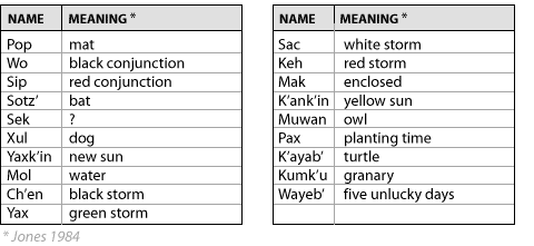 - In most cases, the actual day name as spoken in the time of the Classic Period (ca. 200-900) when most inscriptions were made is not known. The versions given here (in Classic Maya, the main language of the inscriptions) are reconstructed based on phonological evidence, if available; a ‘?’ symbol indicates the reconstruction is tentative.
