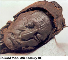 Spontaneous Mummification occurs when a body is mummified due to natural causes. An example of spontaneous mummification is the 1950’s discovery of the Tollund Man who was buried in a peat bog in Europe. The natural acid of the bog along with other natural elements caused the body to become mummified.