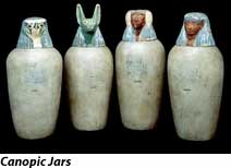 The lungs, stomach, intestines, and liver were dried out and each placed in a canopic jar. The jars came in sets of four, and each of the Four Sons of Horus were assigned the duty of protecting the contents of one of the vessels.