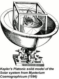 At least as late as Johannes Kepler (1571-1630), a belief in the geometric underpinnings of the cosmos persisted among scientists. Kepler explored the ratios of the planetary orbits, at first in two dimensions (having spotted that the ratio of the orbits of Jupiter and Saturn approximate to the in-circle and out-circle of an equilateral triangle). When this did not give him a neat enough outcome, he tried using the Platonic solids. In fact, planetary orbits can be related using two-dimensional geometric figures, but the figures do not occur in a particularly neat order. Even in his own lifetime (with less accurate data than we now possess) Kepler could see that the fit of the Platonic solids was imperfect. However, other geometric configurations are possible.