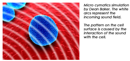 All sounds have structure and form when manifest on membranes, including the surface membranes of cells. We are involved in research in our U.K. laboratory to image such sonic structures in order to further enhance our understanding of cellular mitosis cell division. It is possible that when the arrangement pattern of ion channels on the surface membrane of a cell is triggered by sonic energy pattern’s that match or at least come close to the geometric arrangement of the ion ”channels the ion channels will be stimulated, triggering the replication response.”