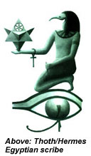 The soul of Thoth is said to have passed into the bodies of men in the manner described in the tablets. As such, he incarnated three times, in his last being known as Hermes, the thrice-born. The Emerald Tablets became a book of record and occult wisdom which he wrote and left in the Pyramid for those of a future Age of Light.