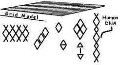 Grid energy is the very essence and fabric of the universe. In the following illustration created by Deja Allison (Usui Reiki Master, Hypnotherapist, Ph.D in Motivational Studies, GBCT Instructor) the grid has no beginning and no end. Looking at the grid vertically you will see it makes a four-sided diamond shape, following creational/sacred geometry showing the interlaced woven matrix of Universal essence. When energy flows unobstructed, the flux remains relativity even, though there is always intonation at all times. You can see examples of how the shape forms other geometry for manifestation. Human DNA is configured by this geometry. In order for the flux to have different levels of intonation there must be catalysis of some kind. Thoughts and action are two different kinds of catalysts. Therefore, there must be movement to effect change.