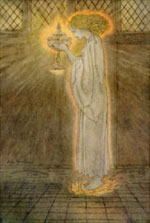 The connection of Joseph of Arimathea with the Grail legend dates from Robert de Boron’s Joseph d’Arimathie (late 12th century) in which Joseph receives the Grail from an apparition of Jesus and sends it with his followers to Great Britain. Later writers recounted how Joseph used the Grail to catch Christ’s blood while interring him and that in Britain he founded a line of guardians to keep it safe. The early Grail romances centered on Percival and were woven into the more general Arthurian fabric.