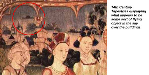 Believe it or not, there are numerous depictions of Unidentified Flying Objects in historical religious art. Many illustrations are of flying saucers, glowing spheres in the sky, and beings riding in flying objects. A few examples are displayed below.